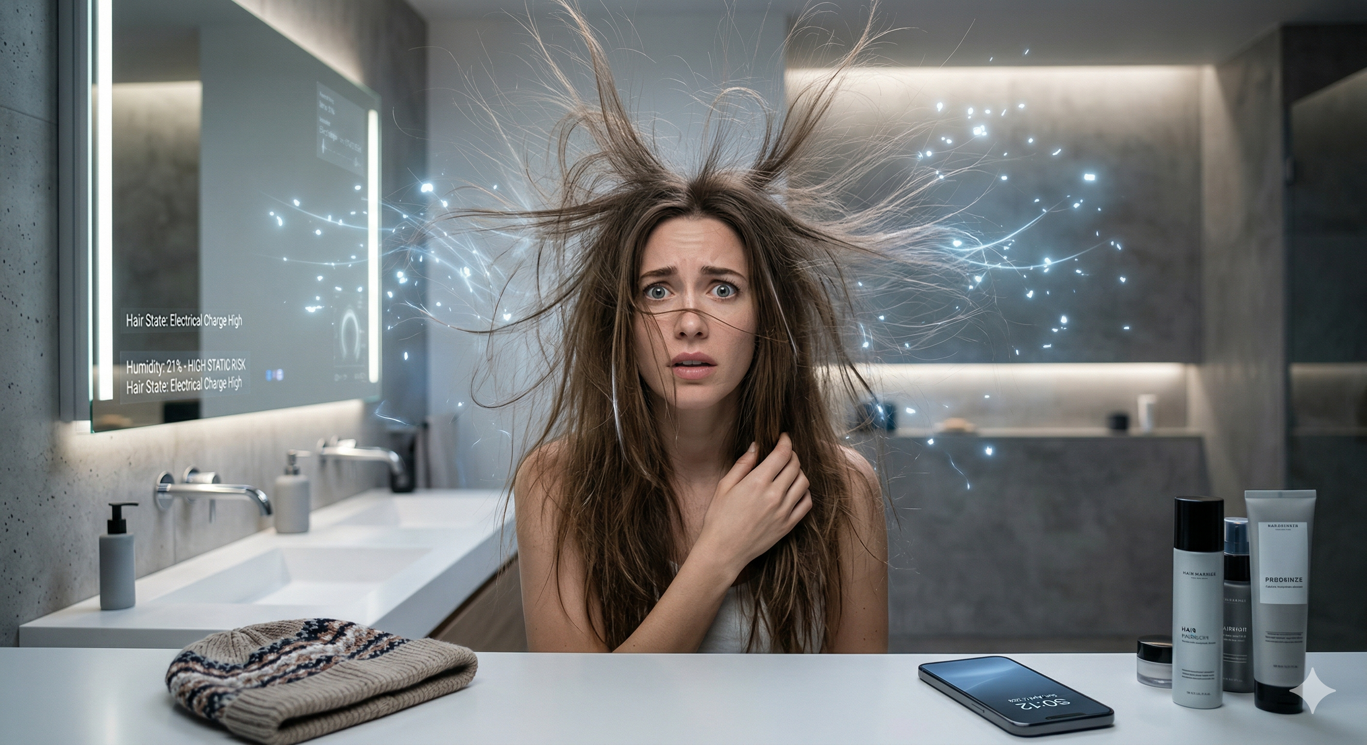 "Hair's electrical properties change dramatically based on moisture content. Dry hair can hold a static charge thousands of times higher than well-hydrated hair." — Dr. Trefor Evans at Scientific American